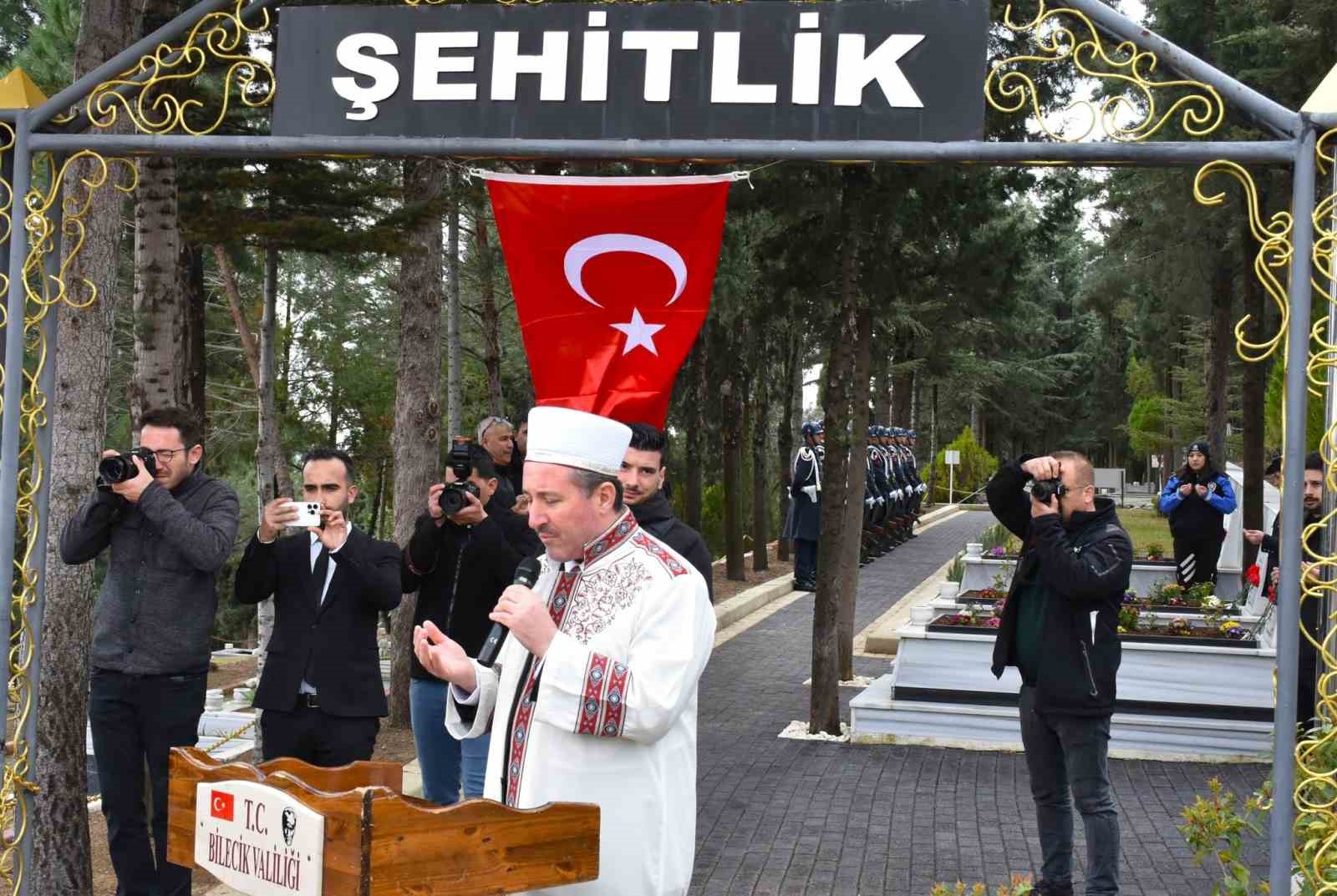 Törene, Bilecik Valisi Şefik Aygöl, protokol üyeleri, askeri personel ve vatandaşlar katılım sağladı. Program kapsamında, 2. Jandarma Eğitim Tugay Komutanlığı askerleri tarafından saygı atışı yapıldı. Ardından Vali Şefik Aygöl, şehitlik defterini imzalayarak duygu dolu anlara tanıklık etti. Tören, Ertuğrulgazi Camii İmam Hatibi Murat Geçvan’ın Kur’an-ı Kerim tilaveti ve İl Müftüsü Ahmet Dilek’in yaptığı dua ile son buldu.