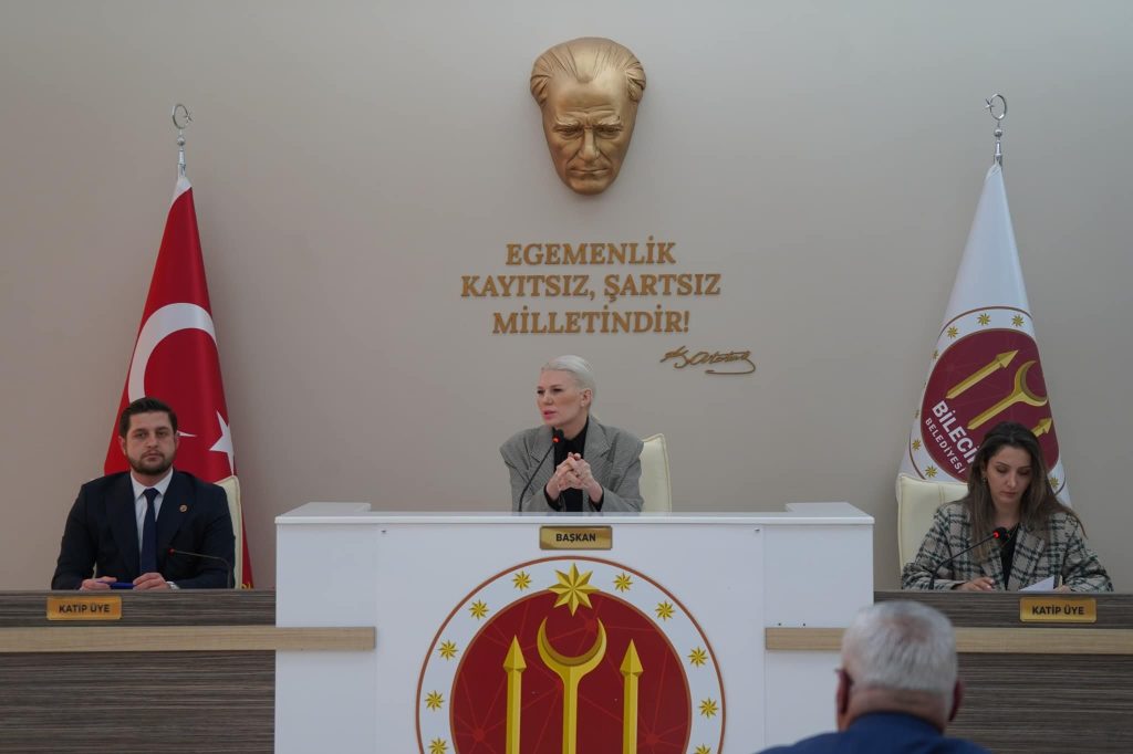Belediye Başkanı Melek Mızrak Subaşı başkanlığında Şeyh Edebali Kültür ve Kongre Merkezinde olağanüstü toplantıda 2 gündem maddesi ele alındı. Toplantının ilk maddesinde mülkiyeti belediyeye ait İstiklal Mahallesi 89 ada 15 parselde kayıtla taşınmaz ile ilgili olarak alacaklı Alve İnşaat ve İnşaat Malzemeleri Sanayi ve Ticaret Limited Şirketi ile var olan uyuşmazlığın sulh ile tasfiye, kabul ve feragatine ilişkin her türlü anlaşma ve protokoller yapılması, istinaf ve temyiz yargılamasından feragat edilmesi hususlarında Belediye Başkanına yetki verilmesi konusu görüşüldü.