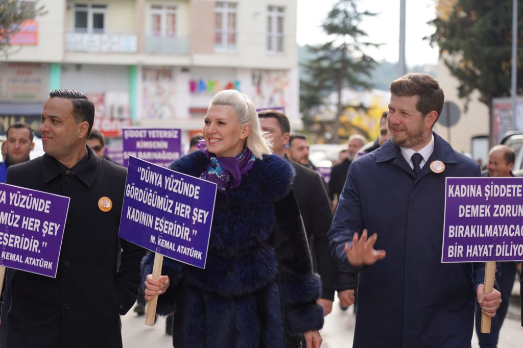 ‘’Bugün, kadına karşı şiddetle mücadele günü. Belediyedeki erkek ve kadın çalışanlarımız güçlü bir yürüyüş yaptık. Ellerindeki pankart ve dövizlerde bugüne dikkat çekecek mesajlar yazılı. Bu farkındalığa tüm kadınlarımız erişmek zorunda. Ne yazık ki bu yüzyılda hala şiddetle karşı karşıya kalan kadınlar var. Bizler bunlarla mücadele etmek durumundayız. Nasıl ki Mustafa Kemal Atatürk, bizlere seçme ve seçilme hakkı verdi. Bugün burada Türkiye’de hak sahibi ve söz sahibiyken geçtiğimiz yıllarda Bilecik’te de kadına şiddet olaylarını çok fazlaca gördük. Artık istiyoruz ki şiddet görmeyelim artık istiyoruz ki ölmeyelim. Bizim gücümüz başkasının üzerinde sınanmasın, denenmeyelim. Burada çok sayıda erkek çalışanımız var. Çünkü bu konuda en büyük desteği verecek olan onlar. Mustafa Kemal Atatürk’ün de dediği gibi ‘Dünya yüzünde gördüğümüz her şey kadının eseridir’ Tüm şiddet mağduru kadınlarımızı rahmetle anıyorum. Bir kez daha saygıyla hatırlıyoruz.”