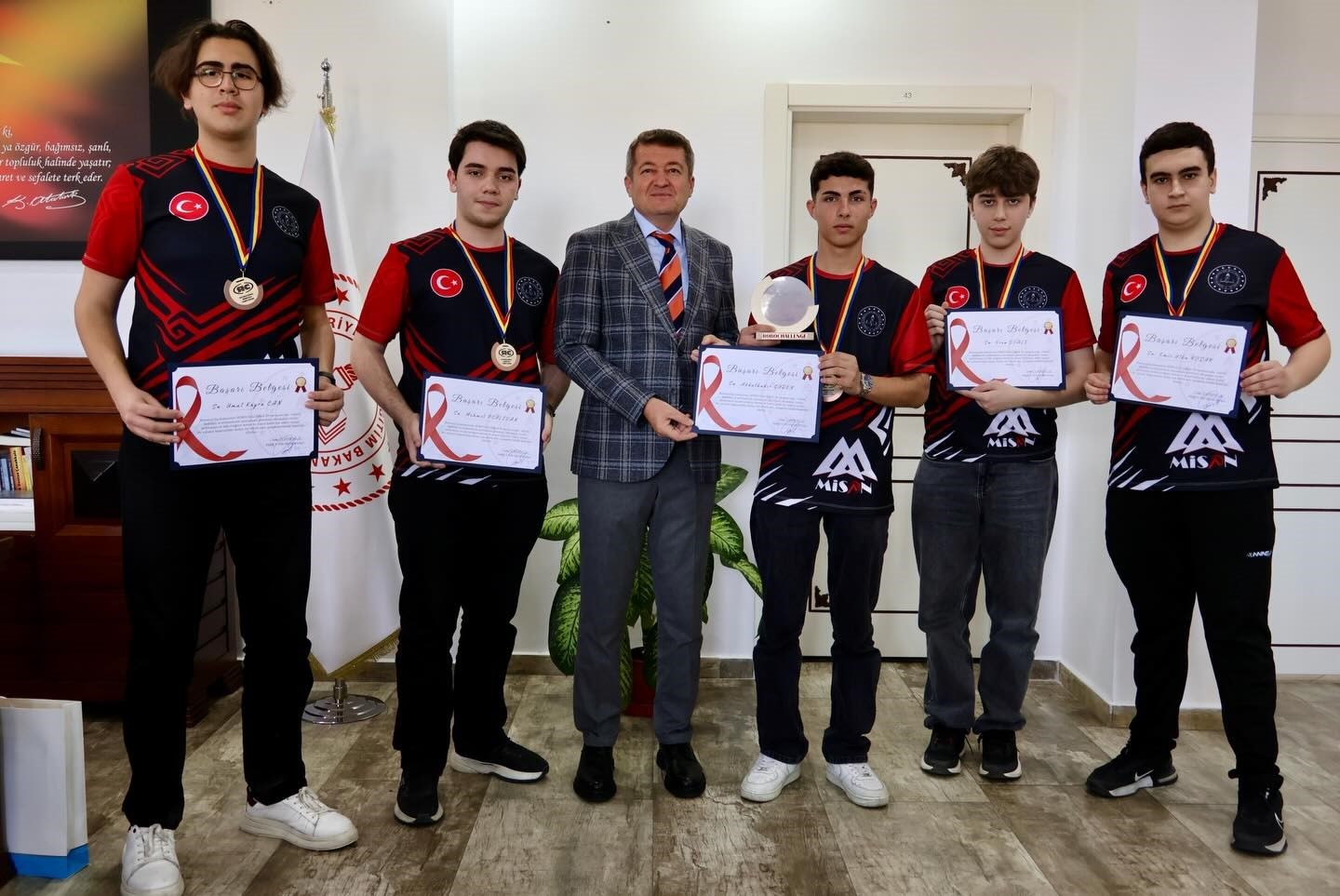 Bilecik İl Milli Eğitim Müdürü Serdal Şimşek, dünya üçüncülüğü elde eden öğrenci ve öğretmenleri makamında kabul etti.