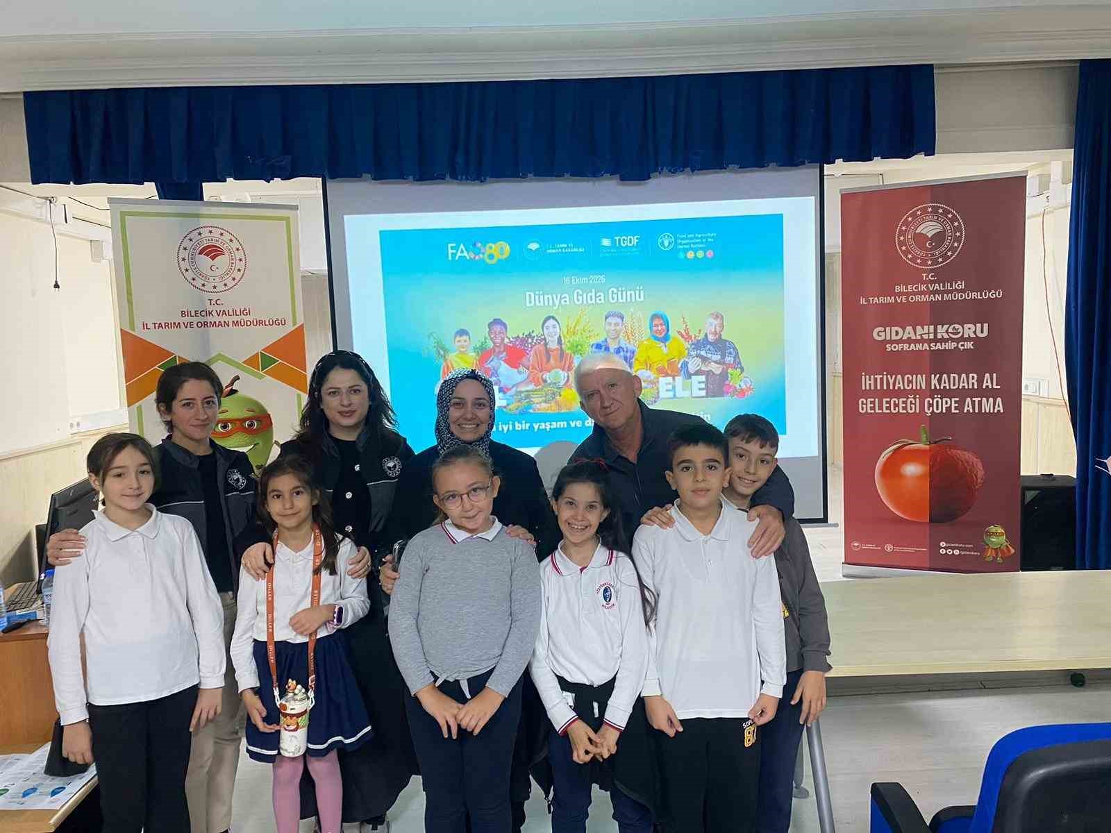Birleşmiş Milletler Gıda ve Tarım Örgütü (FAO)’nun kuruluş yıldönümü olan ve her yıl kutlanan ‘Dünya gıda gününün’ bu yılki teması ‘Daha iyi gıda ve daha iyi bir gelecek için el ele’ oldu. Bu kapsamda, Bilecik İl Tarım ve Orman Müdürlüğü Gıda Mühendisleri tarafından Atatürk İlkokulu’nda etkinlik düzenlendi. Etkinlikte, 385 öğrenciye ‘Gıda israfı’ konusunda eğitim verilerek, sağlıklı beslenme, gıdanın doğru kullanımı ve israfın önlenmesi hakkında bilgilendirmelerde bulunuldu.