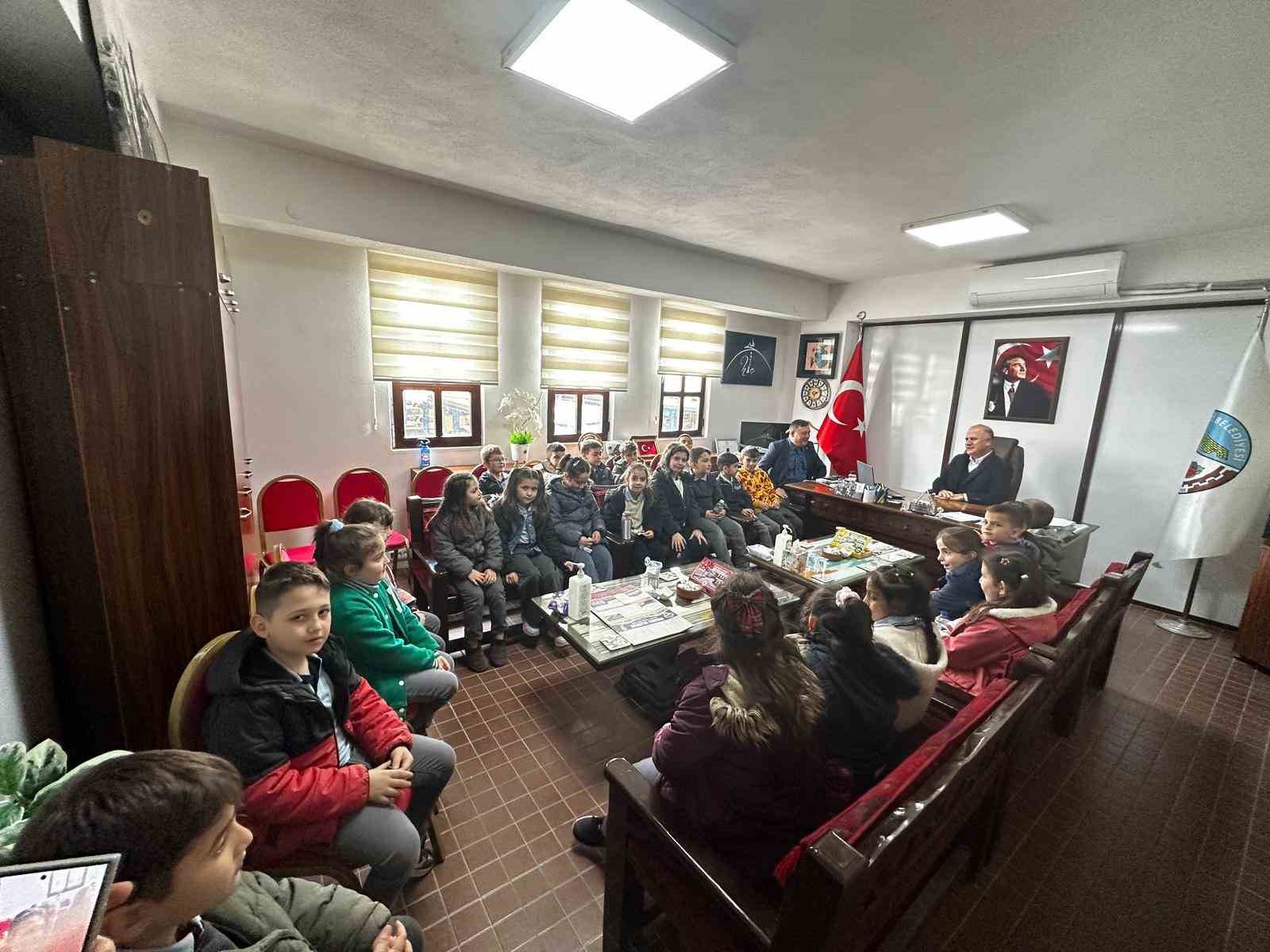 Osmaneli İlkokulu 2. sınıf öğrencileri Osmaneli Kaymakamı Abdüssamed Kılıç ve Belediye Başkanı Bekir Torun’u makamında ziyaret etti. Ziyarete 60 öğrenci katılırken, öğrenciler sınıf öğretmenleri Elif Bilgiç Özer ve Tuğba Küçük eşliğinde Kaymakamlık ve Belediye ziyaretlerini gerçekleştirdi. Ziyaret sırasında öğrenciler, kaymakam ve belediye başkanına sorular yönelterek yerel yönetimlerin işleyişi hakkında bilgi aldı. Osmaneli Kaymakamı Abdüssamed Kılıç, öğrencilere yakından ilgilenerek sorularını yanıtladı, çeşitli bilgiler paylaştı ve eğitim hayatlarına dair tavsiyelerde bulundu. Çocukların nazik ziyaretlerinden duyduğu memnuniyeti dile getiren Kılıç, gençlere başarılar diledi.