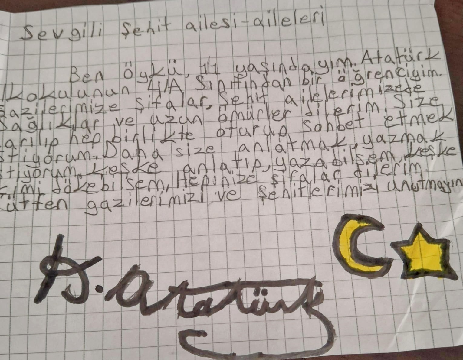 Bilecik Bozüyük Atatürk İlkokulu 4. sınıfta okuyan öğrenciler, şehit ailelerine ve gazilere mektup yazdılar.