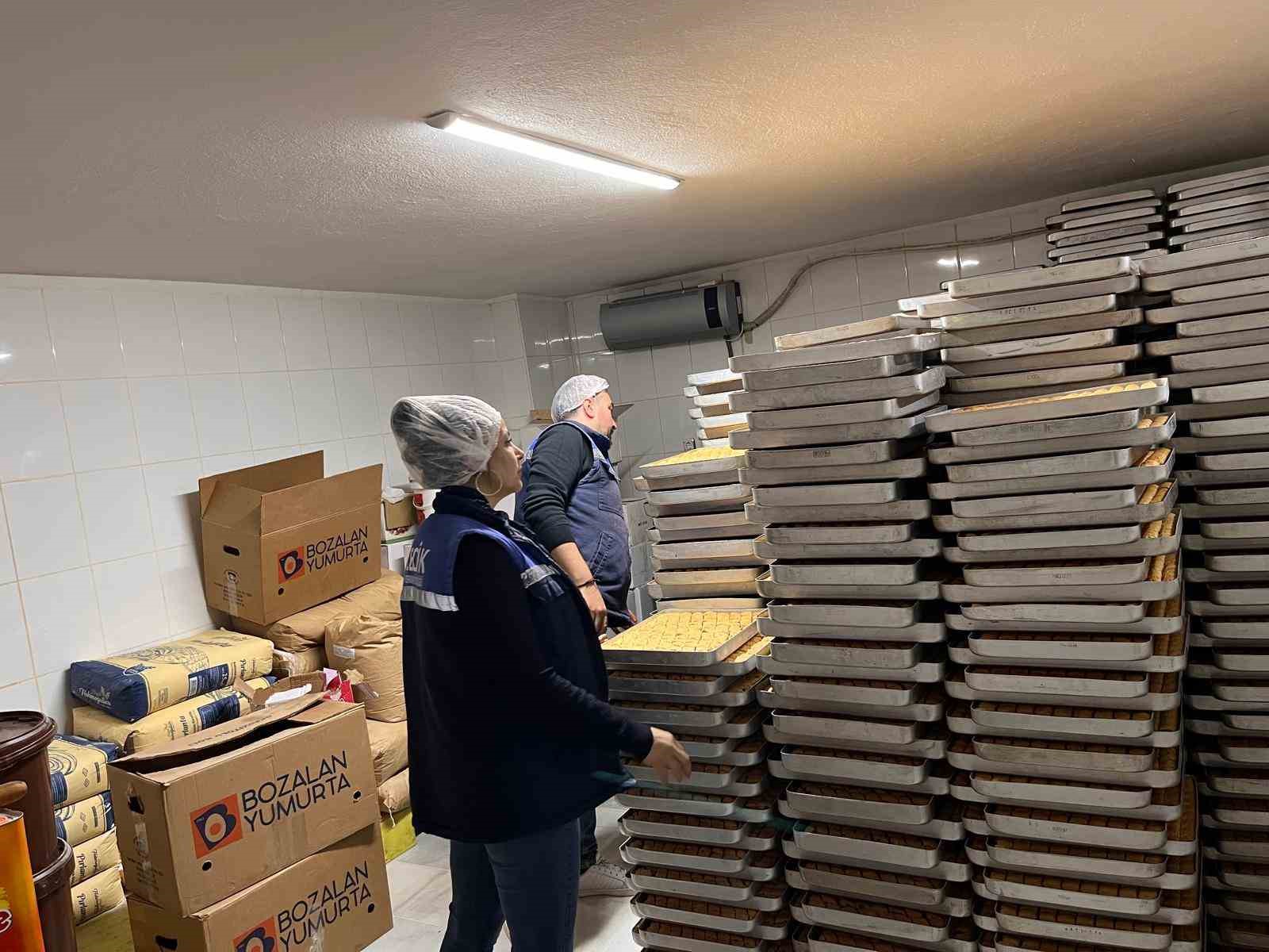 Bayramda vatandaşların güvenli gıda tüketimini sağlamak için yetkililer tarafından yapılan denetimlerde, gıdaların ve hammaddelerin son tüketim tarihleri , muhafaza koşulları ile etiket bilgileri titizlikle incelendi.