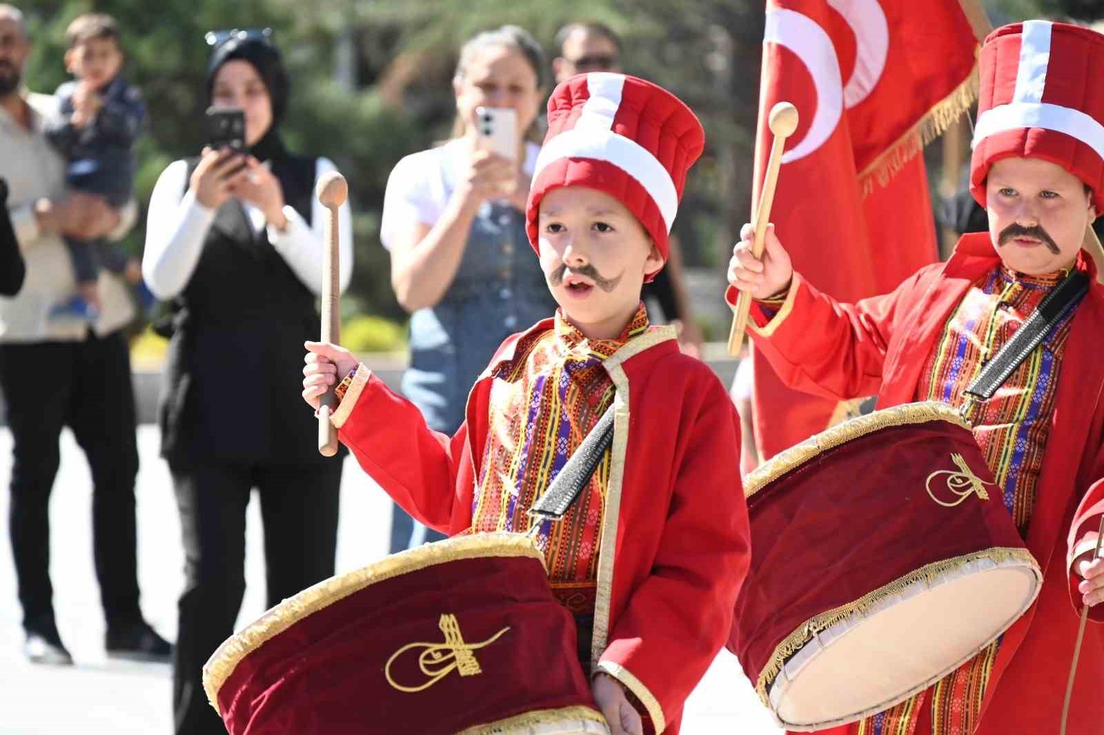 Törende öğrenciler tarafından günün anlam ve önemini belirten şiirler okundu, folklor gösterileri, müzikli dans gösterileri ve mehteran gösterisi sunularak bayrak teslim töreni yapıldı. İlköğretim Haftası nedeniyle düzenlenen çeşitli yarışmalarda dereceye giren öğrencilere ödülleri protokol üyeleri tarafından verildi. Tören, tüm katılımcılarla birlikte hatıra fotoğrafı çekinilmesi ile sona erdi.
