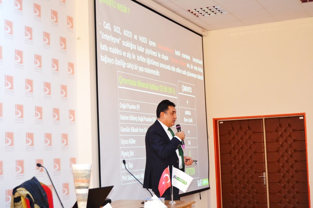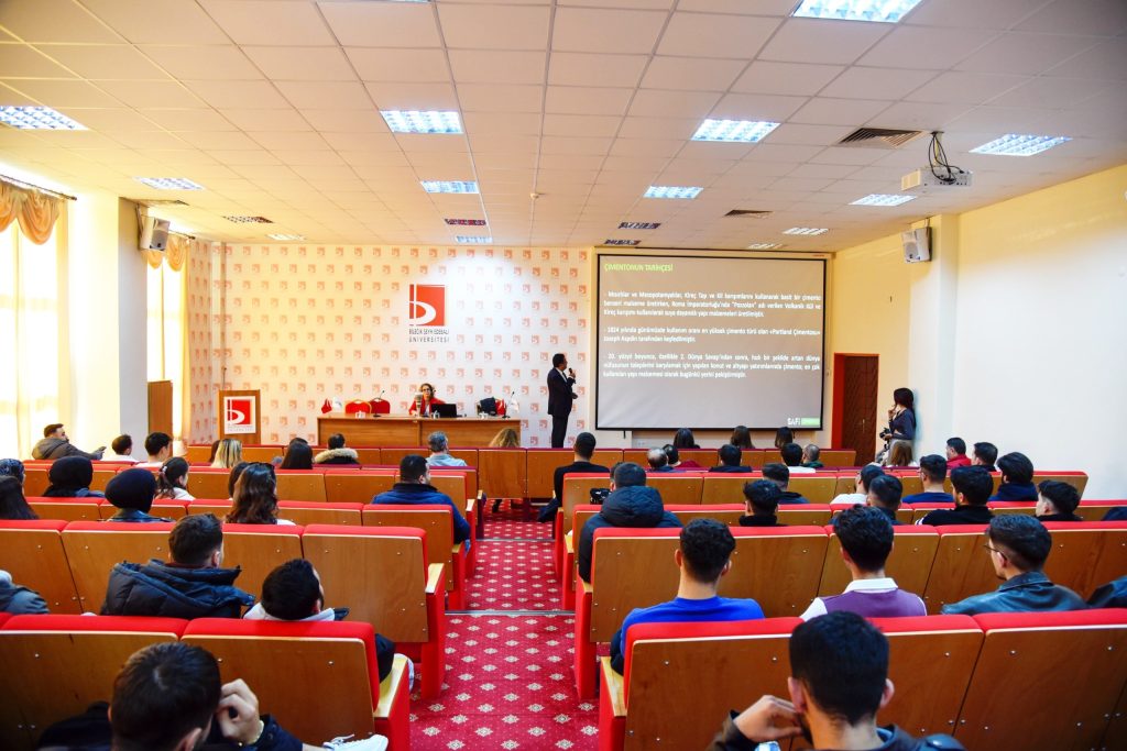 İktisadi ve İdari Bilimler Fakültesi konferans salonunda gerçekleştirilen seminere özel bir çimento fabrika Müdürü Özgün Çınar ve Kalite Müdürü Seher Ertaş konuk olarak katıldı. Seminerde çimentonun tarihçesi, klinker ve çimento kavramları, fosil katı yakıt, alternatif yakıt kullanımı, elektrik enerjisi kullanımı gibi enerji alanları, çimento sektöründe iş hayatı, dünya ve Türkiye çimento sektörü, çimento üretimi, kalite kontrol süreçleri, yasal zorunluluklar ve standartlar gibi konular kapsamında bilgiler paylaşıldı.