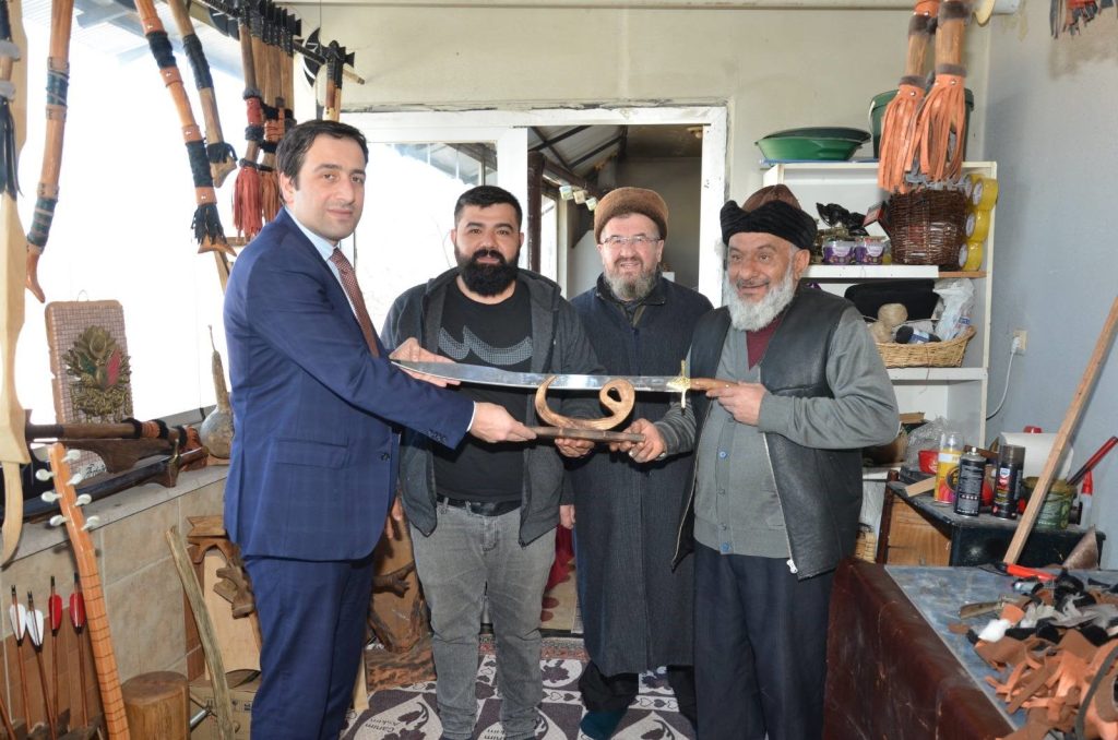 İdris Dülger, Osmanlı dönemine ait geleneksel el sanatlarını yaşatmak amacıyla, balta, kama, kılıç, ok-yay gibi tarihi silahlar ve çeşitli ahşap ürünler üretiyor. El emeğiyle yapılan bu özgün ürünler, hem sanatsal hem de fonksiyonel açıdan büyük ilgi görüyor. Ziyaret sırasında Kaymakam Tuncer, bu tür geleneksel zanaatların yaşatılmasının önemini vurgulayarak, bölgedeki kültürel mirasın korunması için çaba gösterilmesi gerektiğini belirtti.