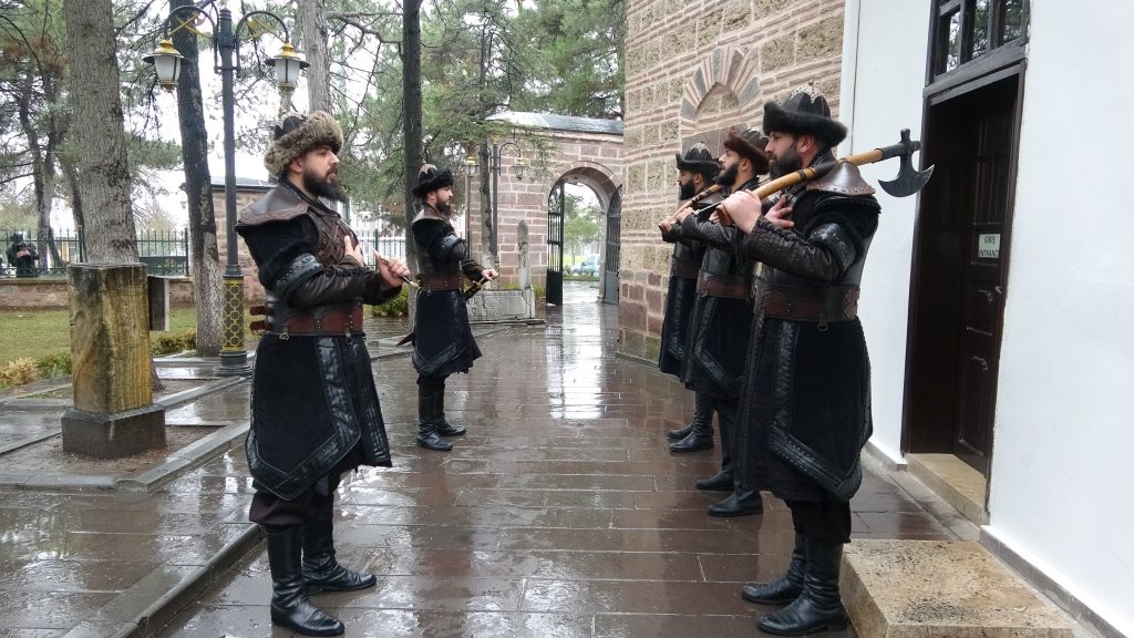 Osmanlı Devleti’nin kurucusu Osman Gazi’nin babası Ertuğrul Gazi’nin Bilecik’in Söğüt ilçesindeki türbesinde alp kıyafetli askerlerin ’Saygı Nöbeti’ hem Osmanlı ruhunu yaşatıyor hem de ziyaretçileri duygulandırıyor. 2017 yılında dönemin valisi şuan İzmir Valisi Süleyman Elban’ın büyük çabalarıyla Ertuğrul Gazi önünde ’Saygı Nöbeti’ başlatılırken, bu nöbetle Söğüt ruhu ziyaretçilere daha fazla işlemişti. O yıldan bugüne ’Saygı Nöbeti’ değişimi sırasında nöbeti devreden Alpler, “Ertuğrul Gazi Türbesi saygı nöbetini vukuatsız olarak devrediyorum” derken, nöbeti alan Alpler ise “Ertuğrul Gazi Türbesi saygı nöbetini vukuatsız olarak devrediyorum” diyordu. Şimdi ’Saygı Nöbeti’ değişimi sırasında türbe kapısına gelen Alp başı, nöbeti devralacak Alplere seslenerek, “Kuruluşun ve kurtuluşun beşiği Ertuğrul Gazi Han huzurunda, var olsun töremiz, kutlu olsun nöbetimiz, Âmin, yürüyün Alpler, yürüyün” diyerek yürümeye başlıyor.