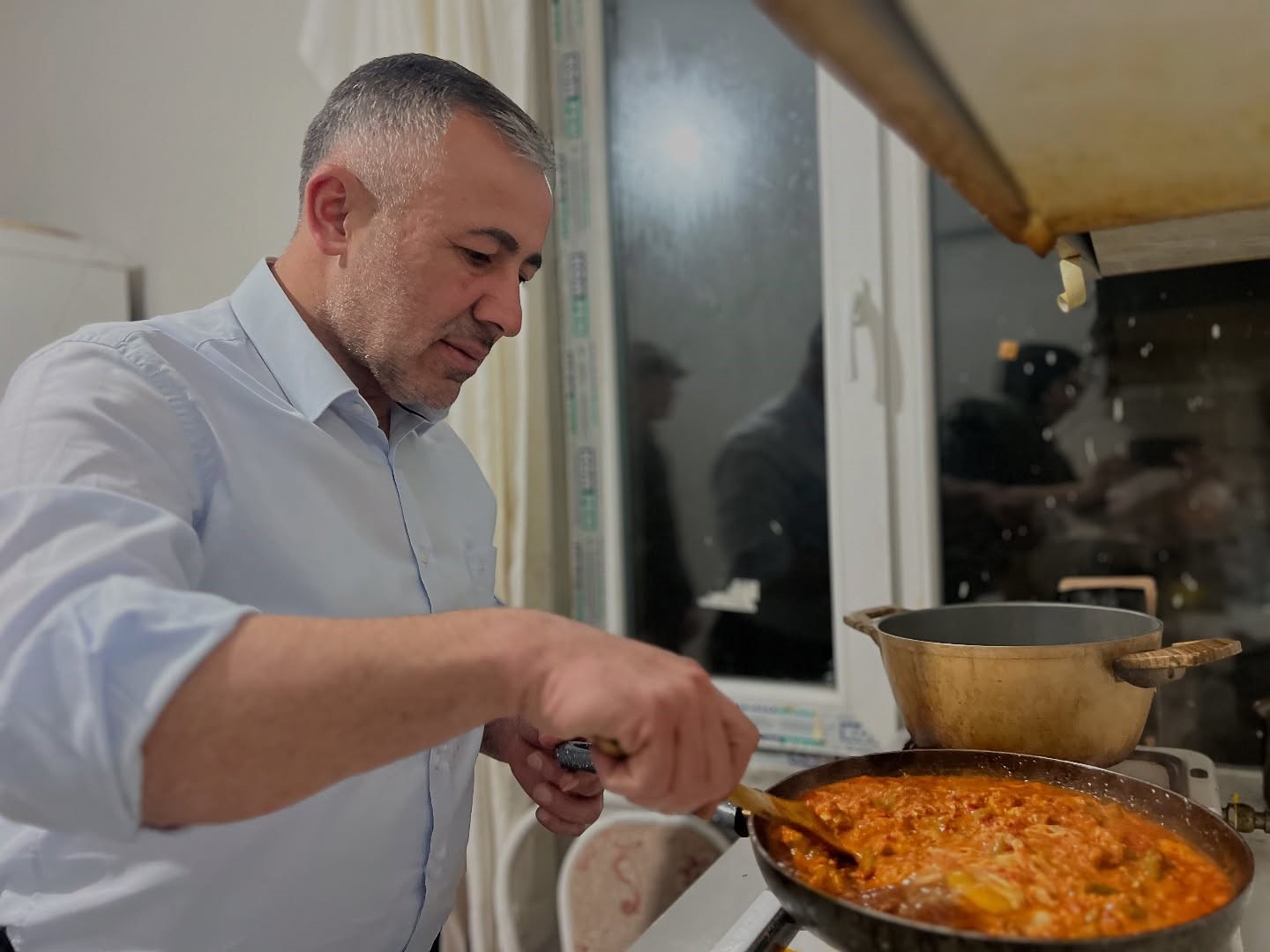 İl Başkanı Yıldırım, misafir oldukları evde sahur menüsü için menemen hazırladı. Samimi bir ortamda gerçekleşen buluşmada, Serkan Yıldırım; “Sahurda Merkez İlçe Başkanımız Servet Yılmaz ile birlikte Filistinli genç kardeşlerimizin gönül sofralarına misafir olduk. Sohbetin koyuluğu ve ortamın neşesi bir yana dursun, gençler yine bize kolları sıvattı. Menemeni puanlamayı onlara bırakıyorum. Genç kardeşlerimize bizleri evlerinde ağırladıkları ve samimi sohbetleri için teşekkür ediyoruz” şeklinde konuştu.