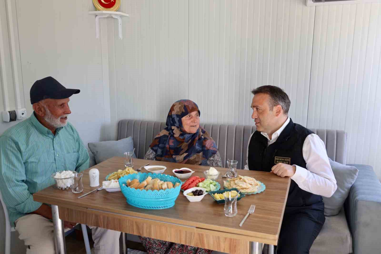 Bilecik’te geçtiğimiz gün çıkan orman yangınında Osmaniye’deki evleri yanan yaşlı çiftin kurulan geçici barınma merkezindeki konteyner evlerindeki ilk sabah kahvaltısına Vali Faik Oktay Sözer de konuk oldu.