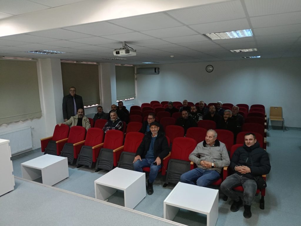 Halk Eğitim Merkezi Müdürlüğü Konferans Salonu’ndaki düzenlenen toplantıda İlçe Emniyet Müdürlüğü Trafik Tescil ve Denetleme Büro Amirliği ve Jandarma Trafik tarafından servis şoförlerine, Okul Servis Araçları Hizmet Yönetmeliği, Karayolları Trafik Kanunu, Yönetmelik kapsamında araçlarda bulundurulması gerekli olan yangın söndürme tüpü, Okul taşıtı yazısı, yanıp sönen dur levhası, öğrenci emniyet kemerleri, kış şartlarında araçlarını nasıl kullanmaları konusu, ehliyet, SRC belgesi vs konuları, okul taşıma faaliyetiyle ilgili sorumluluklar ile iletişim becerileri ve davranış kuralları konularında bilgiler verildi.