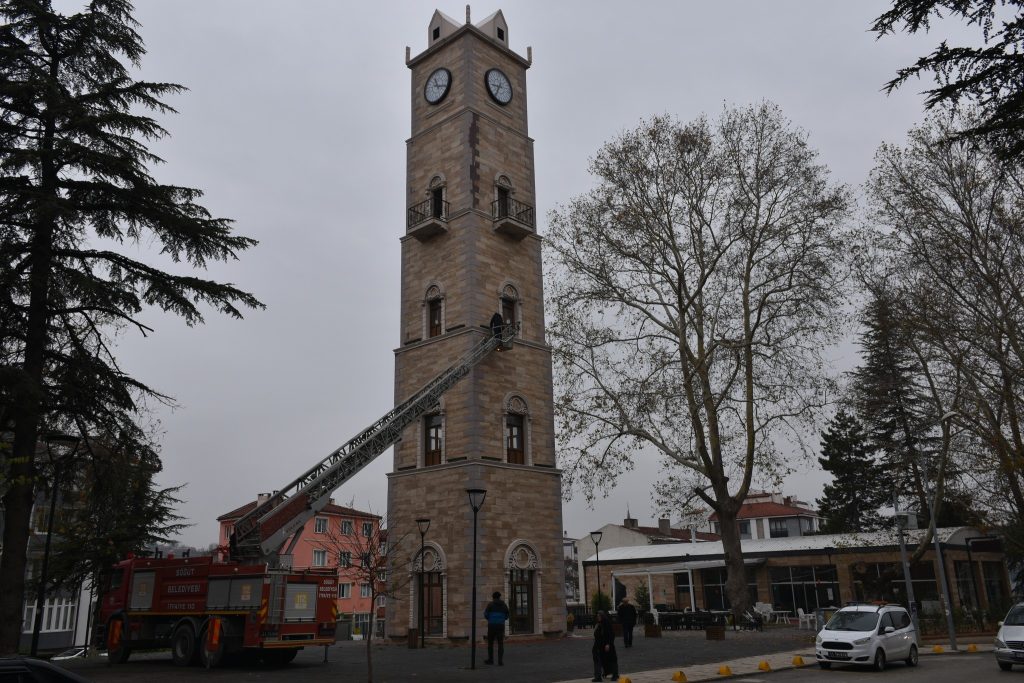Söğüt’te bulunan tarihi ‘Hamidiye Saat’ kulesinde aydınlatma çalışmaları gerçekleştiriliyor.
